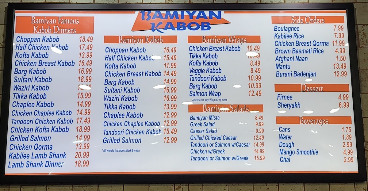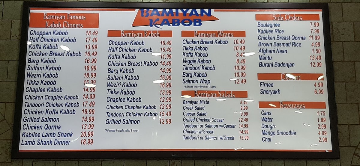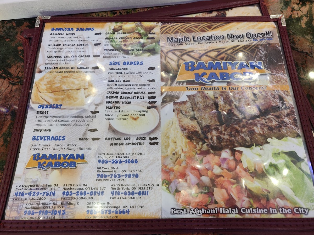 Bamiyan Kabob - ON L4B 3B4 Menu